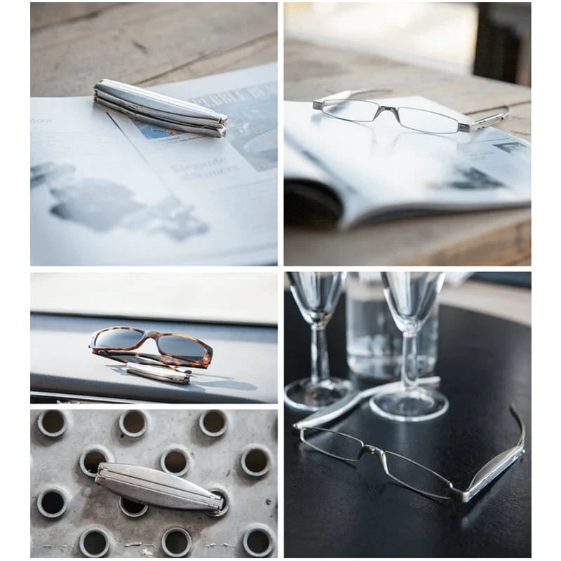 After repeatedly been confronted with the question why glasses have to be so inconvenient. industrial designer created the first fashionable foldable pocket glasses. The folding mechanism is such that a separate outercasing for preventing the glasses from scratches is not necessary.
