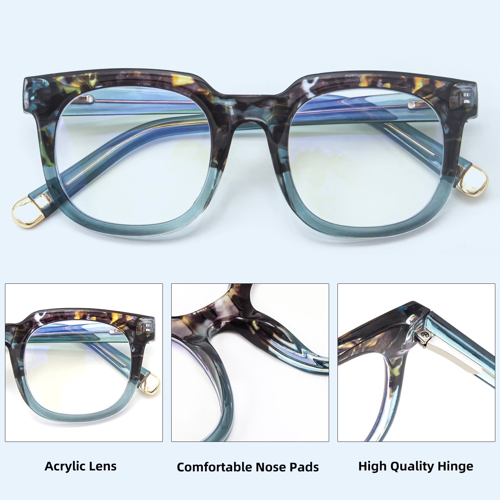 Universal Fit: Designed to suit various face shapes and sizes. our square blue light blocking reading glasses offer versatility and comfort for all wearers. Whether you have a round. oval. square. or heart-shaped face. these glasses are engineered to provide a flattering fit that complements your unique features.