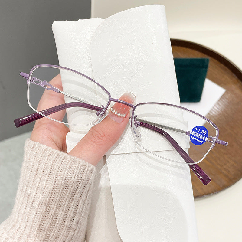 WOMEN'S FASHION SQUARE HALF FRAME ANTI-BLUE LIGHT READING GLASSES